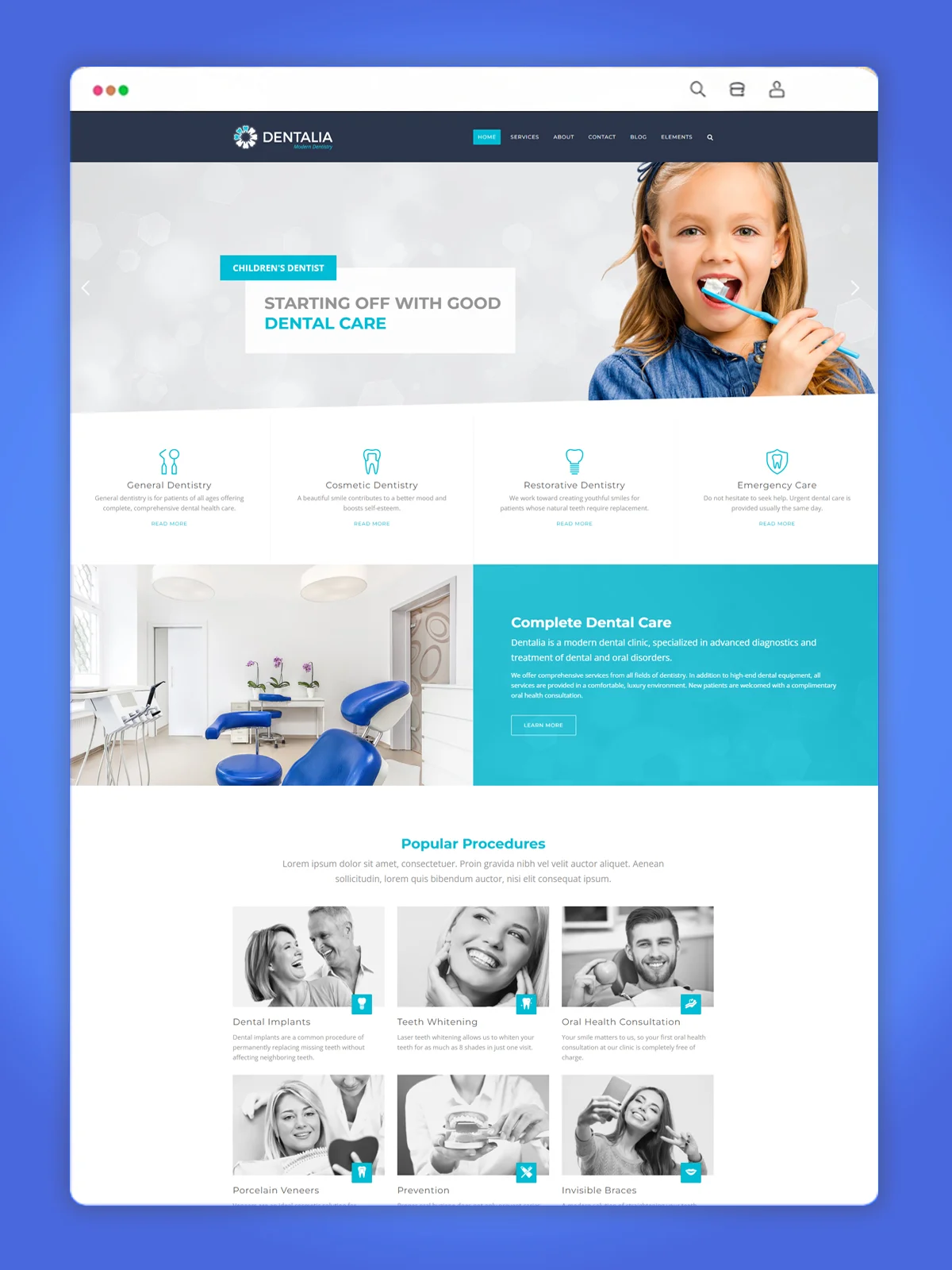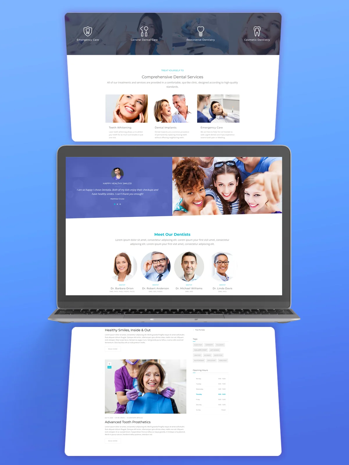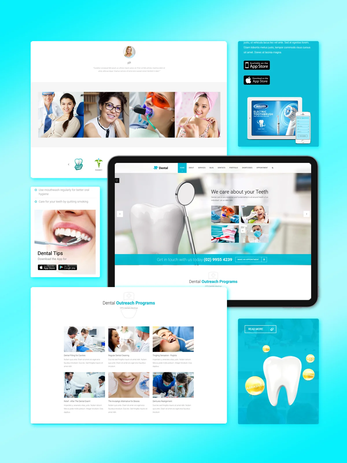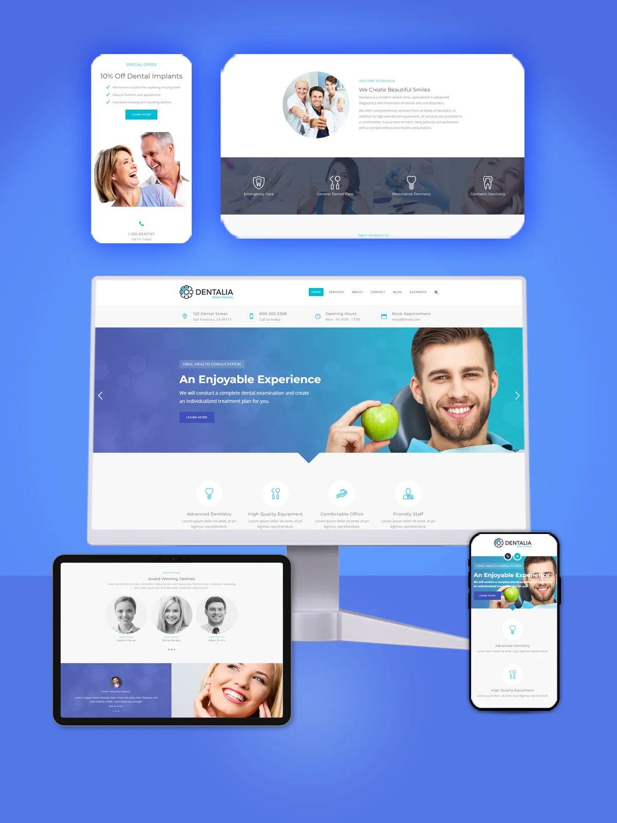 This is more than just a website—it’s your digital front office. Our professionally designed, fully responsive theme provides a flawless online experience for your patients. Built with a clean, modern aesthetic, it makes showcasing your services and building patient trust easier than ever. With integrated features for online booking, patient testimonials, and a gallery for before-and-after photos, it’s the perfect foundation for a growing dental practice.