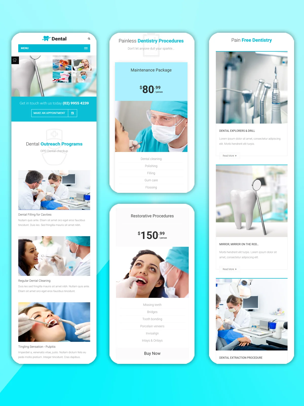 - Services Page: Detailed sections to showcase all your dental treatments.