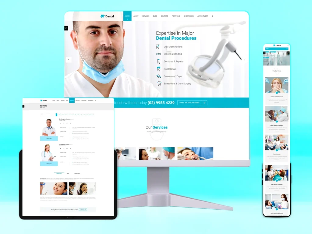 This is more than just a website—it’s your digital front office. Our professionally designed, fully responsive theme provides a flawless online experience for your patients. Built with a clean, modern aesthetic, it makes showcasing your services and building patient trust easier than ever. With integrated features for online booking, patient testimonials, and a gallery for before-and-after photos, it’s the perfect foundation for a growing dental practice.