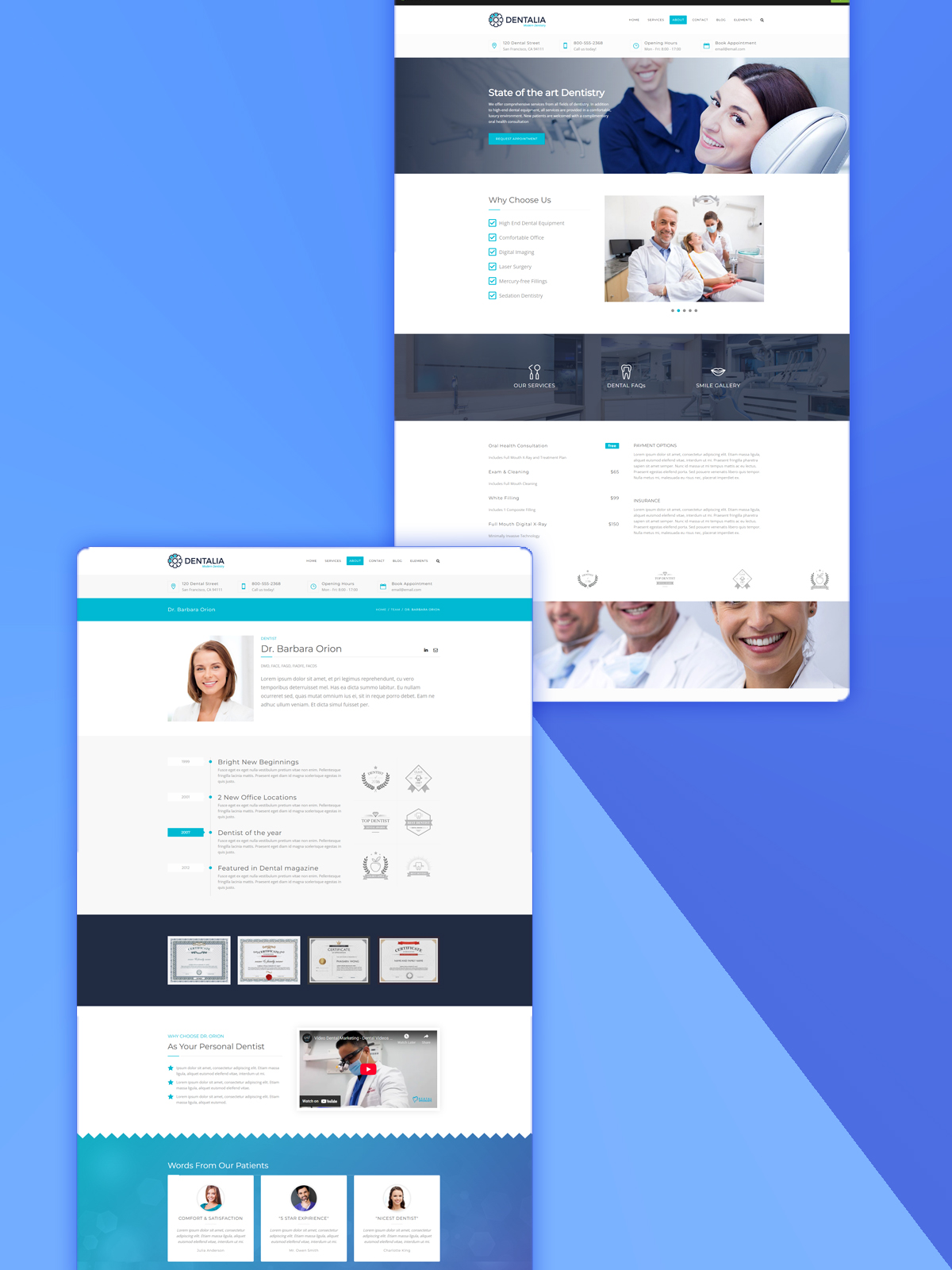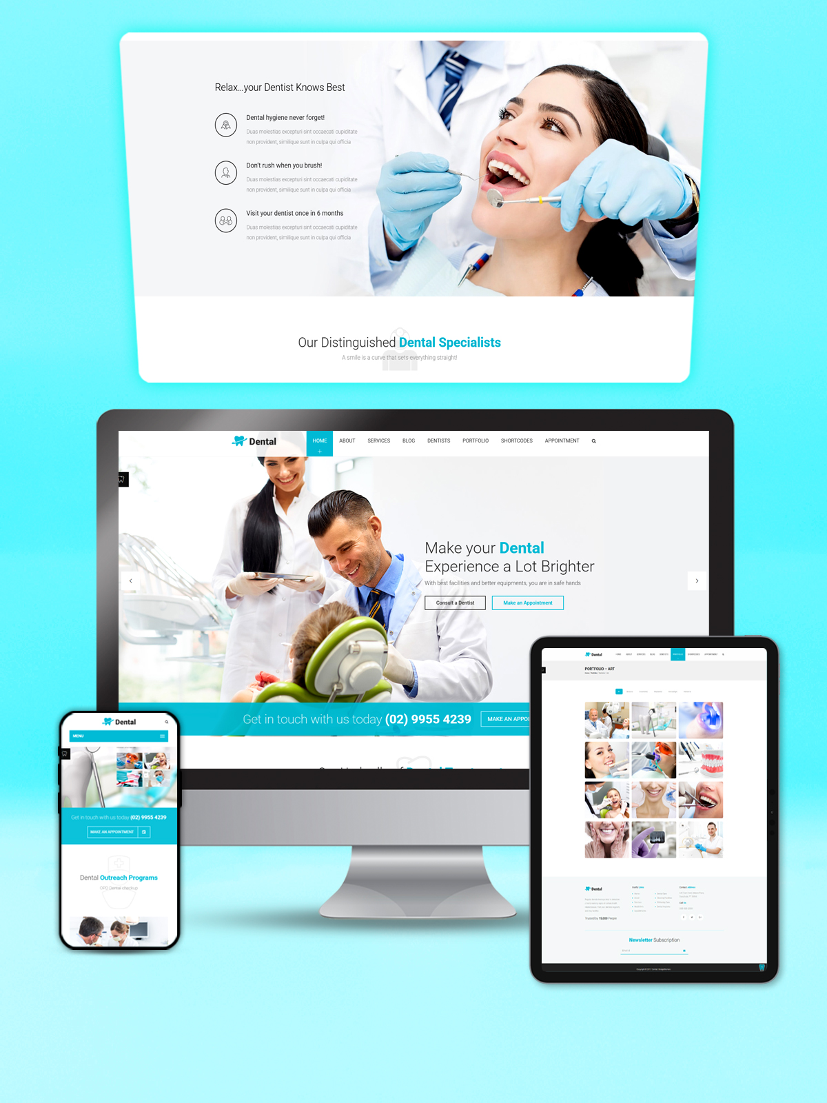 This is more than just a website—it’s your digital front office. Our professionally designed, fully responsive theme provides a flawless online experience for your patients. Built with a clean, modern aesthetic, it makes showcasing your services and building patient trust easier than ever. With integrated features for online booking, patient testimonials, and a gallery for before-and-after photos, it’s the perfect foundation for a growing dental practice.