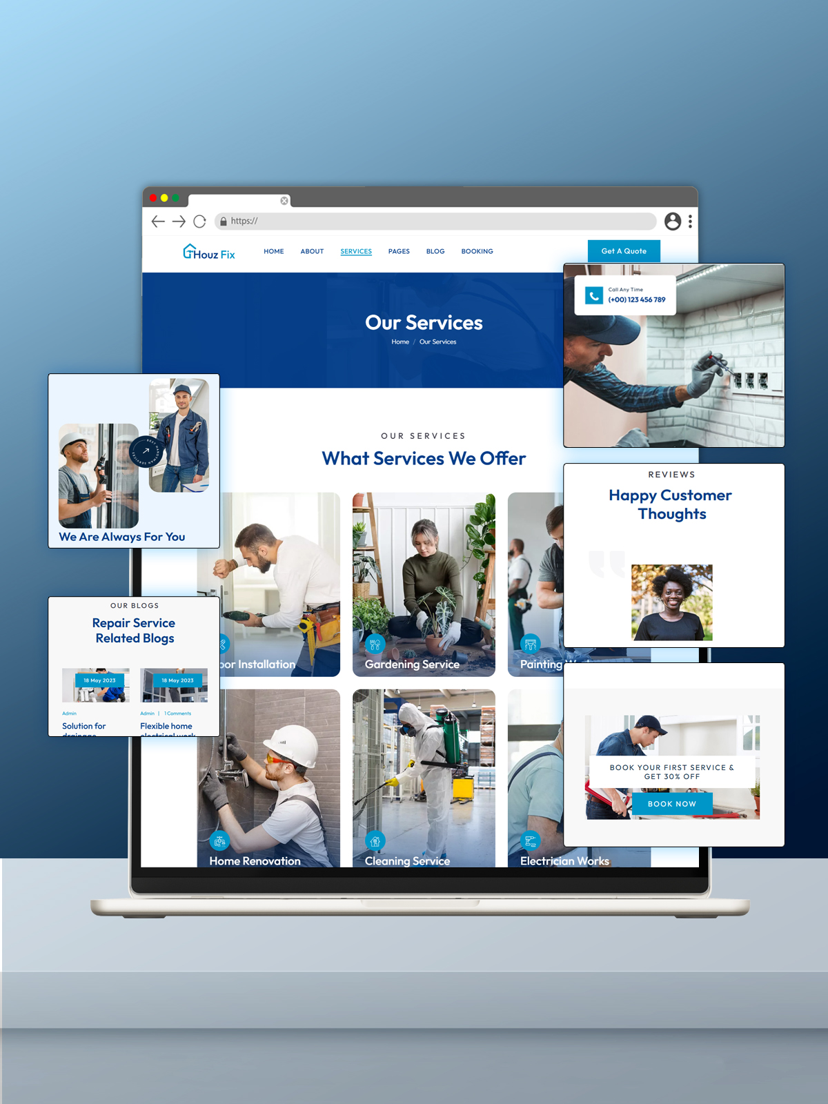 Launch your repair business online with these robust and reliable WordPress themes. Tailored for handyman services, repair contractors, and home improvement professionals, these themes help you clearly present your skills, showcase your projects, and make it easy for clients to get a quote or book an appointment online.