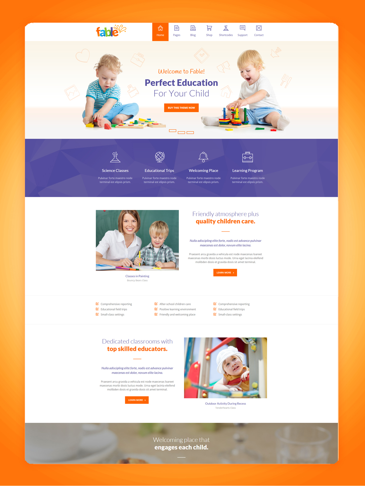 Give your daycare, nursery, or childcare service a modern and trustworthy online presence with this specialized WordPress theme designed for early education, nursing care, and child development centers. Whether you run a preschool, after-school program, or full-day nursery, this theme lets you present programs, facilities, staff, and enrollment options—professionally and parent-friendly.